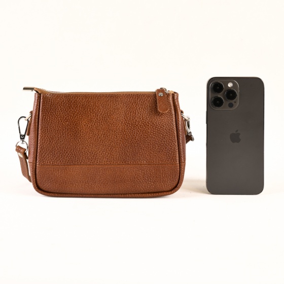 این کیف از چرم طبیعی ساخته شده و با داشتن یک فضای اصلی زیپی، به شما امکان نگهداری امن وسایل شخصی را می‌دهد.