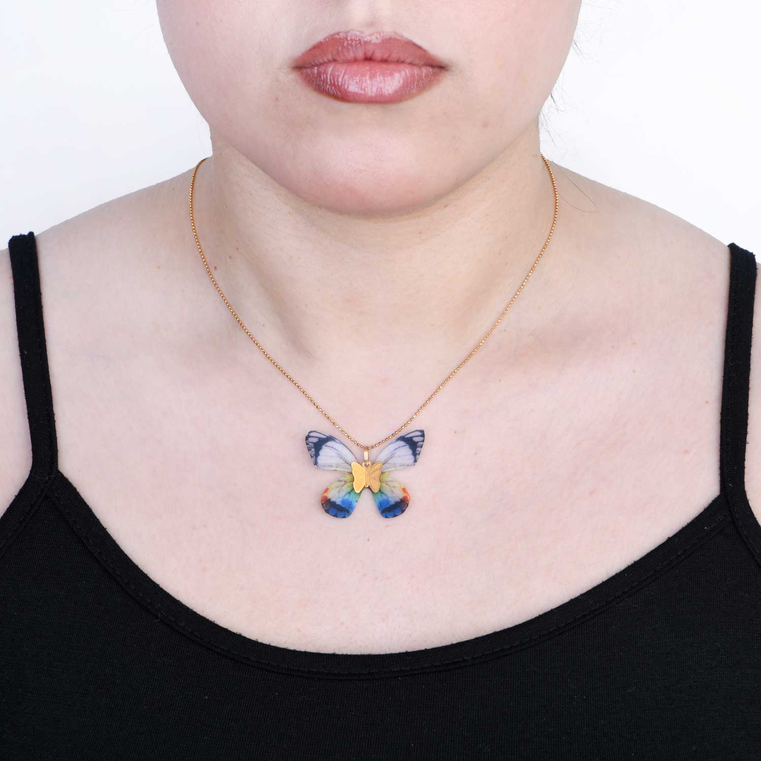 این محصول بدون زنجیر است و یک آویز پروانه ای طلا با طرح پروانه پارچه ای برای شما ارسال خواهد شد.