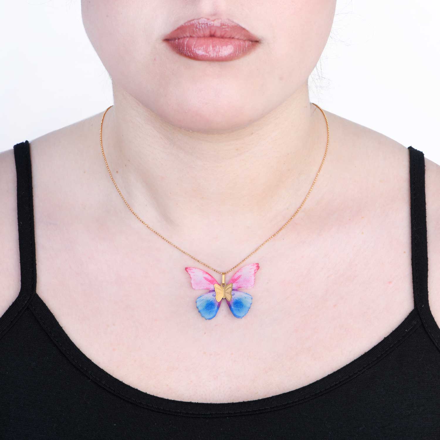 گردنبند پروانه با پلاک طلا، نمادی از آزادی، تحول و زیبایی ظریف است که الهام‌گرفته از لطافت طبیعت طراحی شده است. فرم ظریف پروانه در کنار درخشش طلا، حس سبکی و لطافت را به همراه دارد و جلوه‌ای زنانه، شیک و چشم‌نواز به استایل شما می‌بخشد.