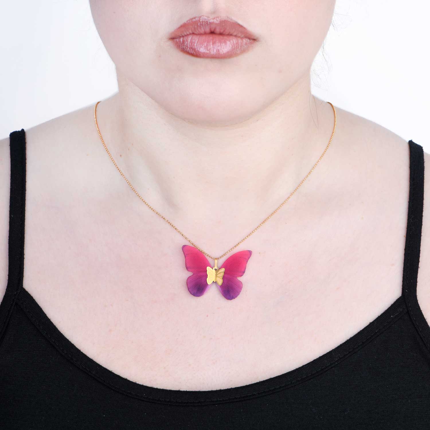 گردنبند پروانه با پلاک طلا، نمادی از آزادی، تحول و زیبایی ظریف است که الهام‌گرفته از لطافت طبیعت طراحی شده است. فرم ظریف پروانه در کنار درخشش طلا، حس سبکی و لطافت را به همراه دارد و جلوه‌ای زنانه، شیک و چشم‌نواز به استایل شما می‌بخشد.